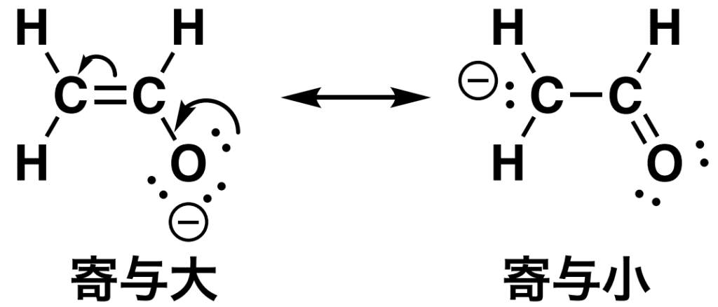 電気陰性度が高い原子の上に電子がある方が当然安定ですよね。