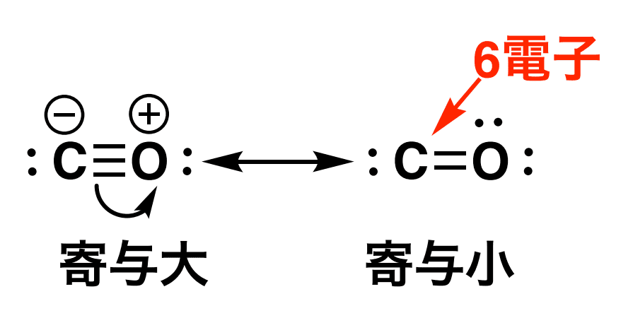 「カルボニル基のC=Oの二重結合は、片方の電子がO原子の上に移動して単結合を形成する共鳴構造を取りやすい」という事実は覚えておくといいと思います。