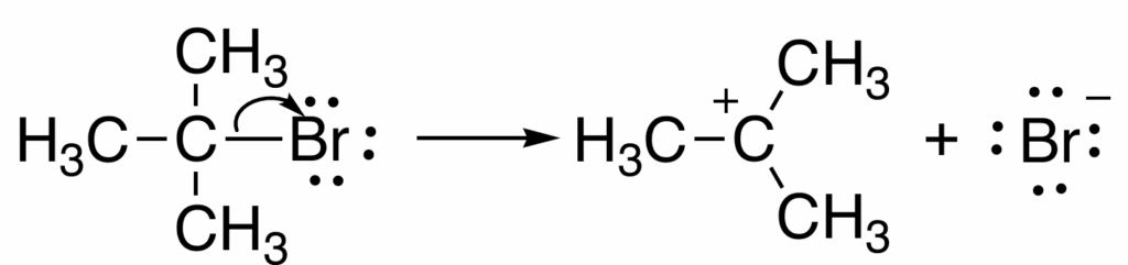 [例:tert-ブチルブロミドからの臭化物イオンの脱離]