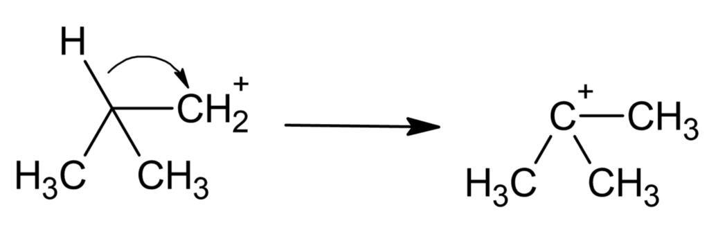 不安定な中間体(カルボカチオンなど)が、より安定な構造へ変化する際に起こります。隣の炭素からHやメチル基が、電子対ごと移動します。