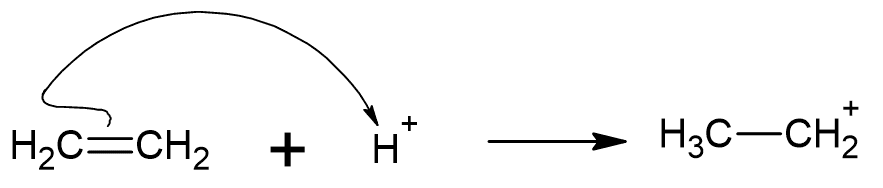 \(\ce{CH2=CH2 + H+ -> CH2+CH3}\)
